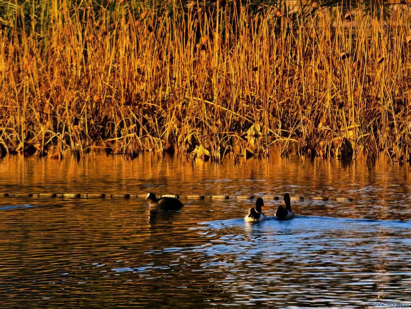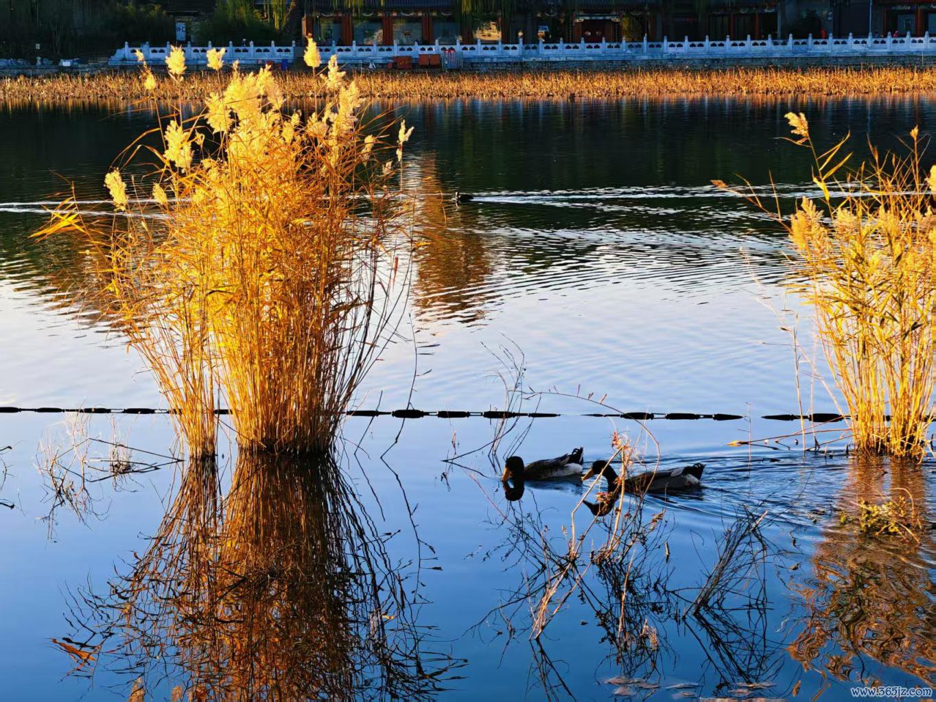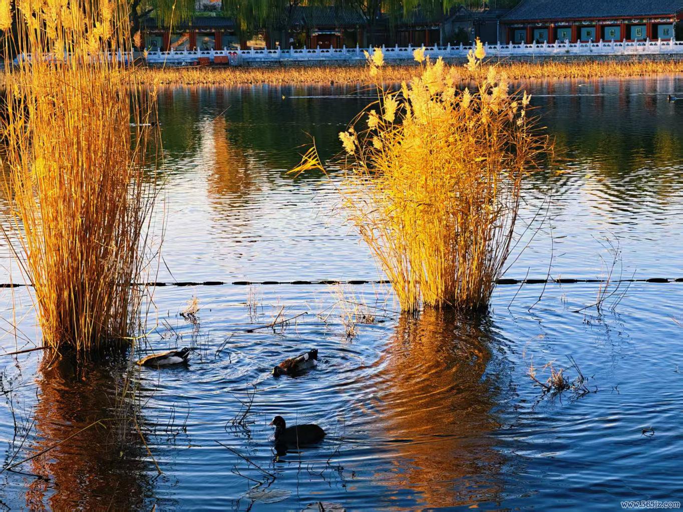 曙光初绽,什刹海西海湿地。成片的芦苇在光晕中泛沉迷东说念主金色,随风轻摇似在低唱。水面如镜,宁静无波,反照着天外与芦苇的影子。偶尔有水鸭掠过,惊起丝丝荡漾,好一幅浑然自成的绝好意思当然画卷。